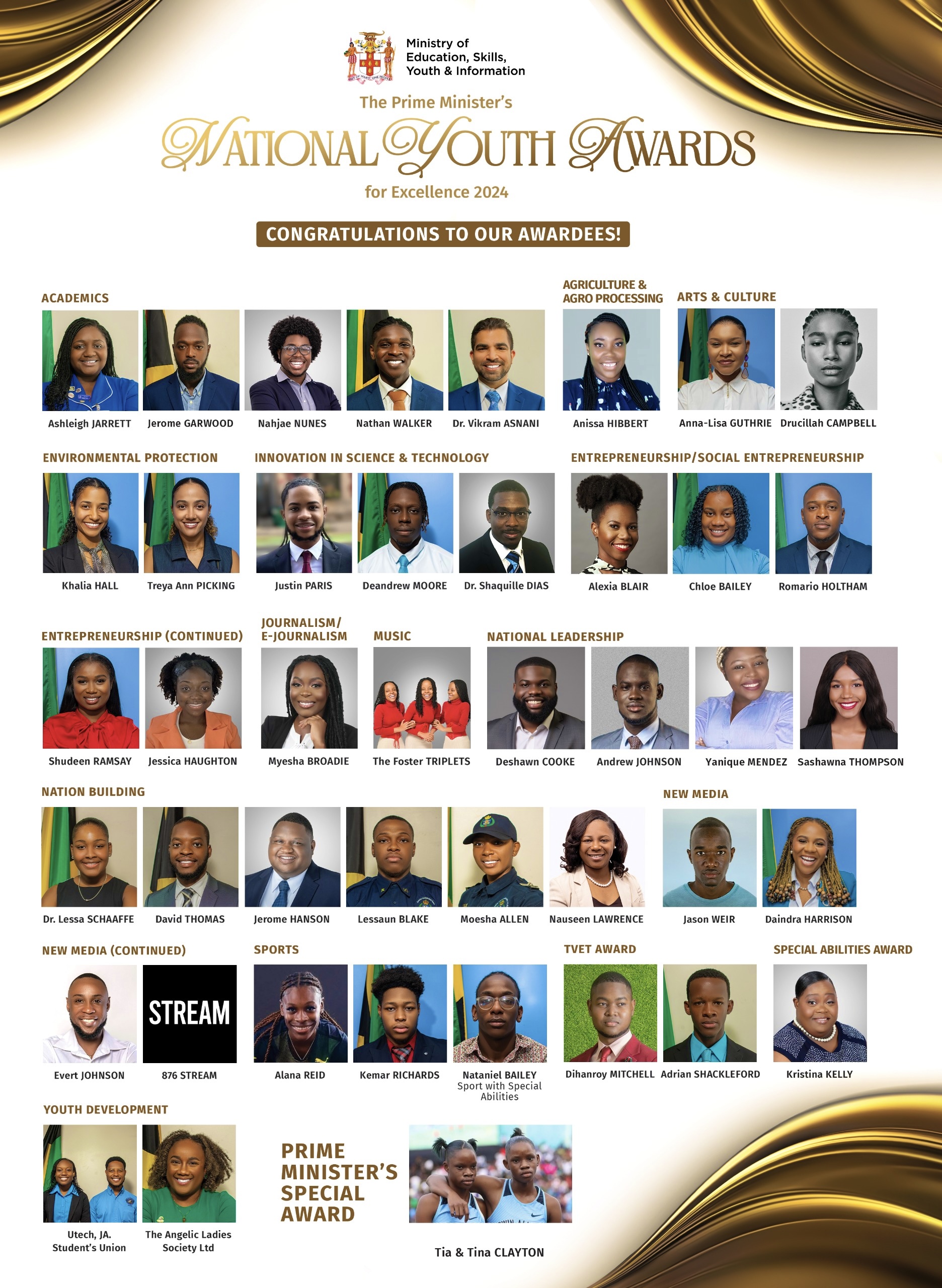 The awards ceremony was held on Saturday, May 31, at Jamaica House, the Office of the Prime Minister in Kingston.